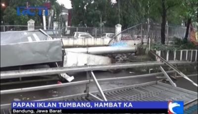 Hujan Deras, Papan Iklan Tumbang di Stasiun Bandung