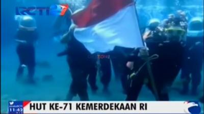 Personel Gabungan TNI-Polri Kibarkan Merah Putih di Dalam Air