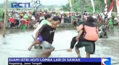 Meriahkan HUT RI ke-72, Warga di Magelang Adakan Lomba Gendong Istri di Sawah