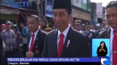 Presiden Jokowi Berjalan Kaki Menuju Lokasi Upacara HUT TNI