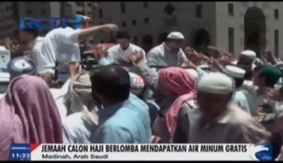 Jamaah Calon Haji Berlomba Dapatkan Minum Gratis