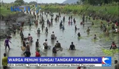 Heboh! Warga Penuhi Sungai Tangkap Ikan Mabuk