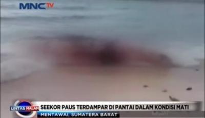 Paus Sepanjang 7 Meter Terdampar di Pantai Jati Mentawai