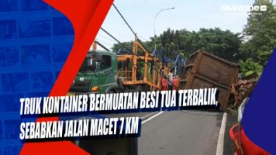 Truk Kontainer Bermuatan Besi Tua Terbalik, Sebabkan Jalan Macet 7 Km