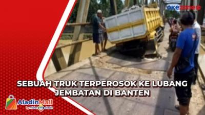 Sebuah Truk Terperosok ke Lubang Jembatan di Banten