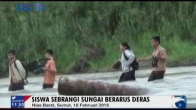 Jembatan Roboh, Siswa Seberangi Sungai ke Sekolah