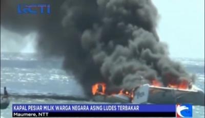 Kapal Pesiar Milik WNA Terbakar di Maumere NTT