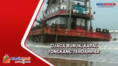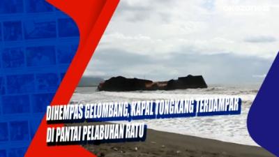 Dihempas Gelombang, Kapal Tongkang Terdampar di Pantai Pelabuhan Ratu