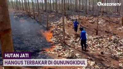 Detik-Detik Hutan Jati Terbakar Diduga Akibat Aktivitas Pembakaran Daun Kering oleh Warga