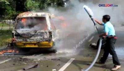 Satu Unit Angkot di Semarang Ludes Dilalap Api, Sopir Menderita Luka Bakar