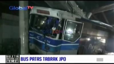 Sebuah Bus Jurusan Cilengsi - Tanjung Priok Tabrak JPO di Jakarta Timur