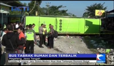 Bus Tabrak Rumah dan Terbalik, 3 Orang Tewas