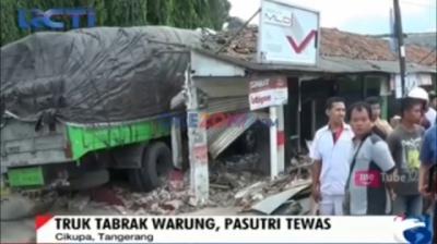 Hindari Tabrakan dengan Motor, Truk Tabrak Warung