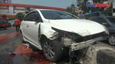 Minibus Tabrak Beton Pembatas Jalan di Pancoran