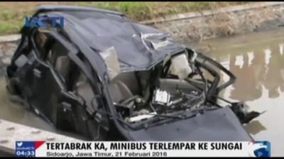 Tertabrak KA, Minibus Terlempar ke Sungai
