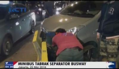 Diduga Mengantuk, Minibus Tabrak Pembatas Busway