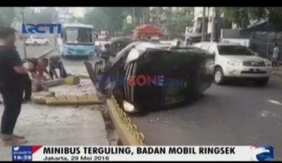 Minibus Tabrak Separator Busway