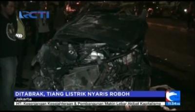 Mobil Tabrak Tiang Listrik dan Gerobak