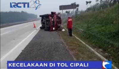 Tabrak Truk, Mobil Boks Terbalik di Tol Cipali