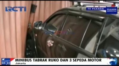 Diduga Belum Mahir Mengemudi, Sebuah Minibus Menabrak Ruko di Jakarta Timur