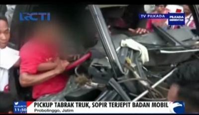 Evakuasi Sopir Pickup yang Terjepit Badan Mobil