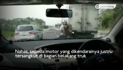 Video Sepeda Motor Nyangkut di Pantat Truk Boks