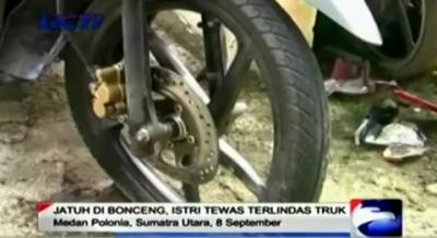 Jatuh Di Bonceng, Istri Terlindas Truk