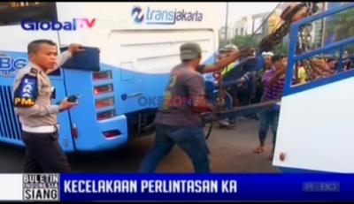 Bus TransJakarta dan Minibus Ditabrak Kereta