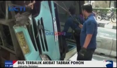 Tabrak Pohon, Bus Transjakarta Terbalik