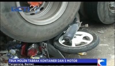 Truk Molen Tabrak Kontainer dan 5 Motor