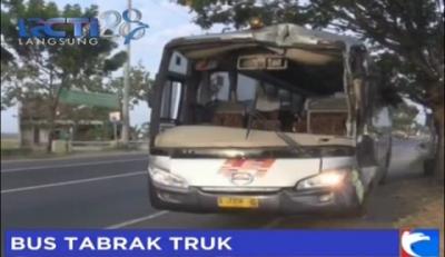 Berhenti Mendadak, Sebuah Bus Ringsek Tabrak Truk di Jomba Jawa Timur