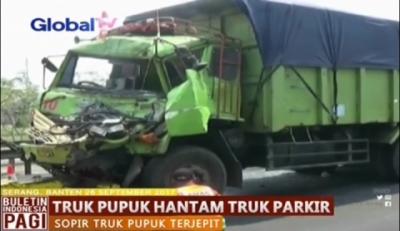 Supir Ngantuk, Truk Pupuk Hantam Kendaraan yang Sedang Parkir