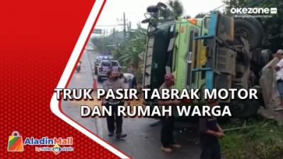 Truk Pasir Tabrak Motor dan Rumah Warga di Mojokerto