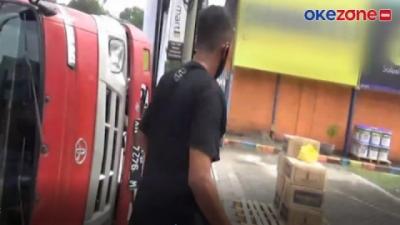 Truk Pengangkut Cat Terguling di Sidoarjo