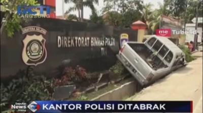 Pikap Seruduk Kantor Binmas Polda Sumsel, Diduga Sopir Mengantuk