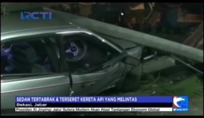 Sedan Tertabrak Kereta Api yang Melintas di Bekasi