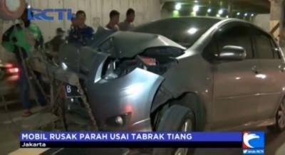 Mobil Ini Rusak Parah Usai Tabrak Tiang di Underpass Tanah Abang