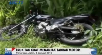 Tak Kuat Menanjak, Truk Tabrak Motor