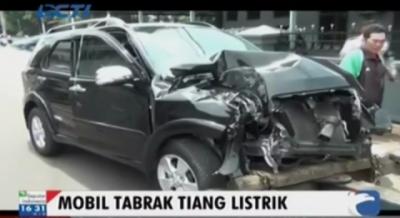 Hindari Motor, Mobil Tabrak Tiang Listrik