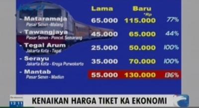 KA Ekonomi Naik Sampai 136 Persen