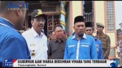 Gubernur Sumut Ajak Warga Bersihkan Vihara yang Terbakar