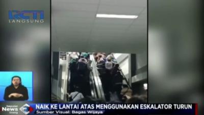 Tak Sabar, Puluhan Penumpang KRL Nekat Gunakan Eskalator Turun untuk Naik ke Lantai Atas