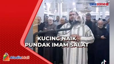 Viral! Kucing Naik Pundak dan Cium Pipi Imam Salat