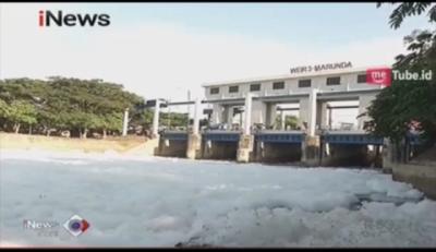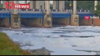 Ngeri, Limbah Busa Setinggi 5 Meter Menutupi Aliran Kali Baru di Depok