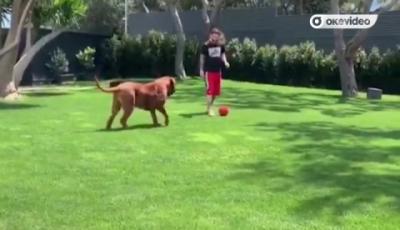 Messi Berlatih Sepakbola dengan Anjing Raksasa