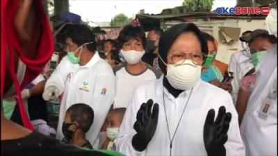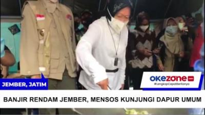 Jenguk Korban Banjir di Jember, Risma Bantu Masak di Dapur Umum