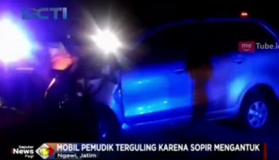 Mobil Pemudik Terguling di Tol Solo-Ngawi