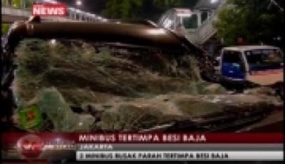 2 Minibus Rusak Parah Tertimpa Besi Baja di Manggarai