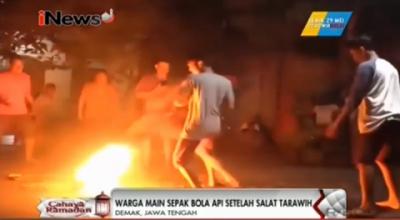Asyiknya Bermain Tradisi Bola Api Usai Salat Tarawih