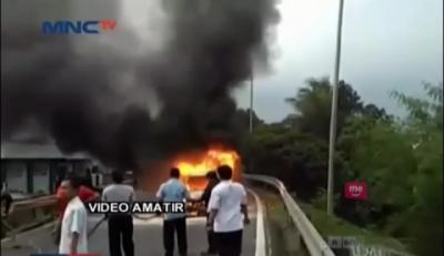Minibus Hangus Terbakar di Tol Jagorawi